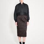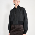 Aviator jacket with wool ribbed cuffs and bottom hem. Two pockets adorn the front whilst two back pleats extend down from the ribbed collar. The Aviator is perfect to be worn over knits in the crisper months. Embroidered 'N' hallmark.