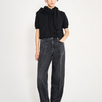 Peg style boy jeans which sit mid waist. Two back pockets and two front pockets. Contrast topstitch detail. Embroidered Automne-Hiver '25 patch sits in the exterior waist band.