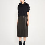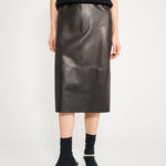 Pencil skirt in leather, including a back slit. Closure: Back zip. 100% Leather