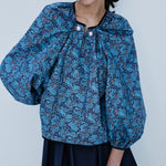 Our iconic Grand Bazaar Top has a shawl shoulder feature and comes with the classic double pearl neck pin. The neck and cuffs have been finished with a flat piping.
