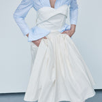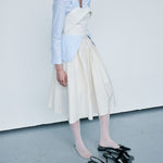 Circle off-white kaimak, voluminous, knee-length skirt with pin-tuck waist.