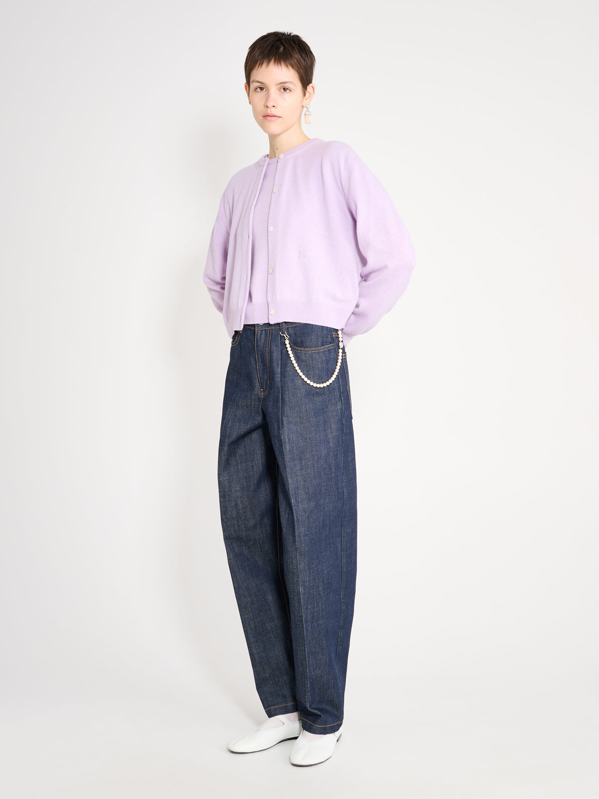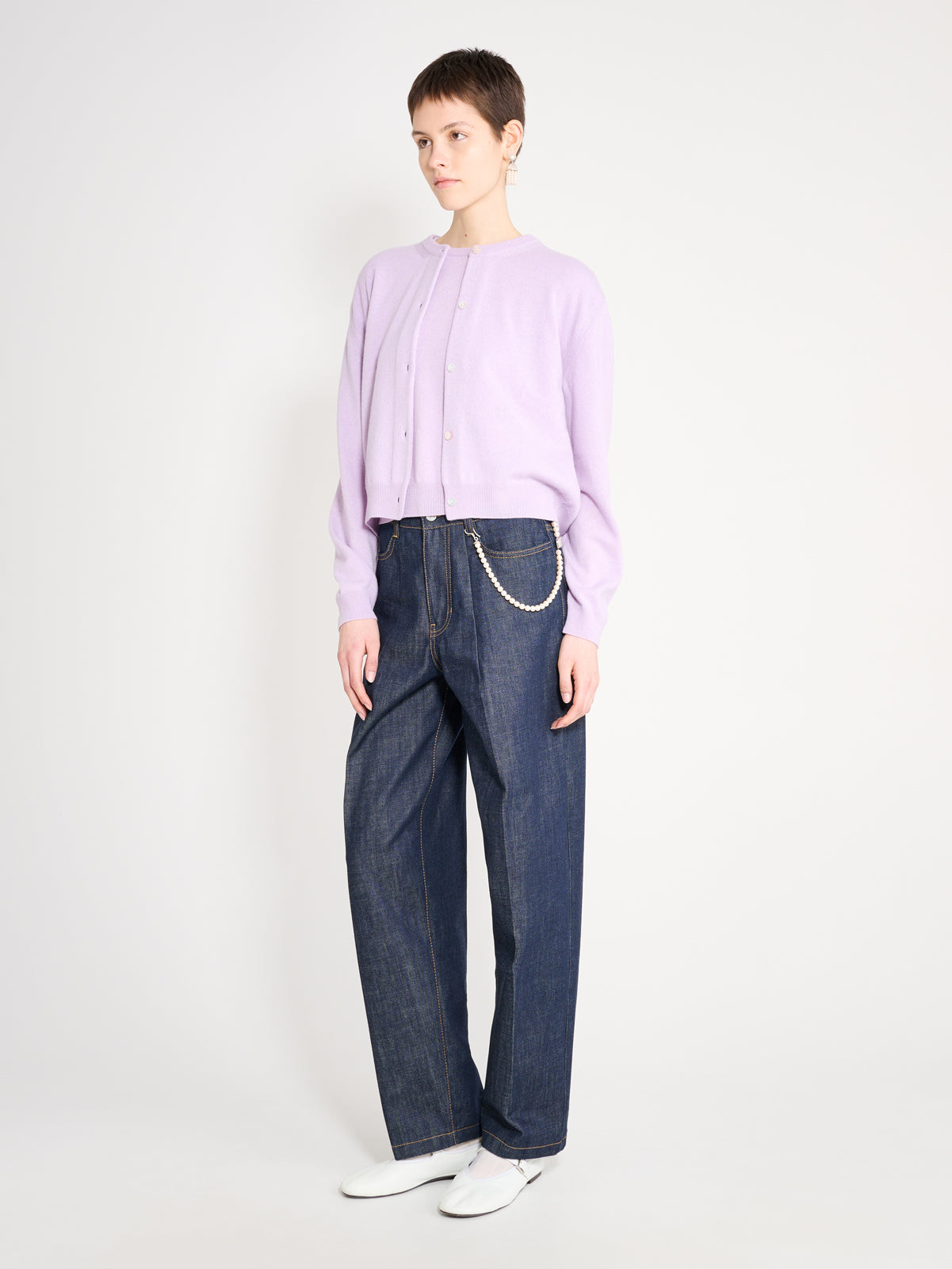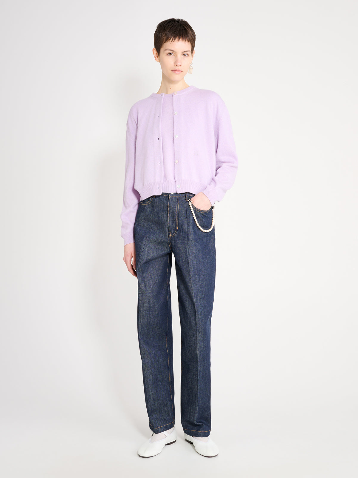 A beautiful lightweight cashmere cardigan with mother of pearl buttons.