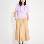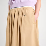 Gathered A-line circle skirt with cream waist frill edging and detached elastic inner waist. Hallmark 'N' embroidery.
