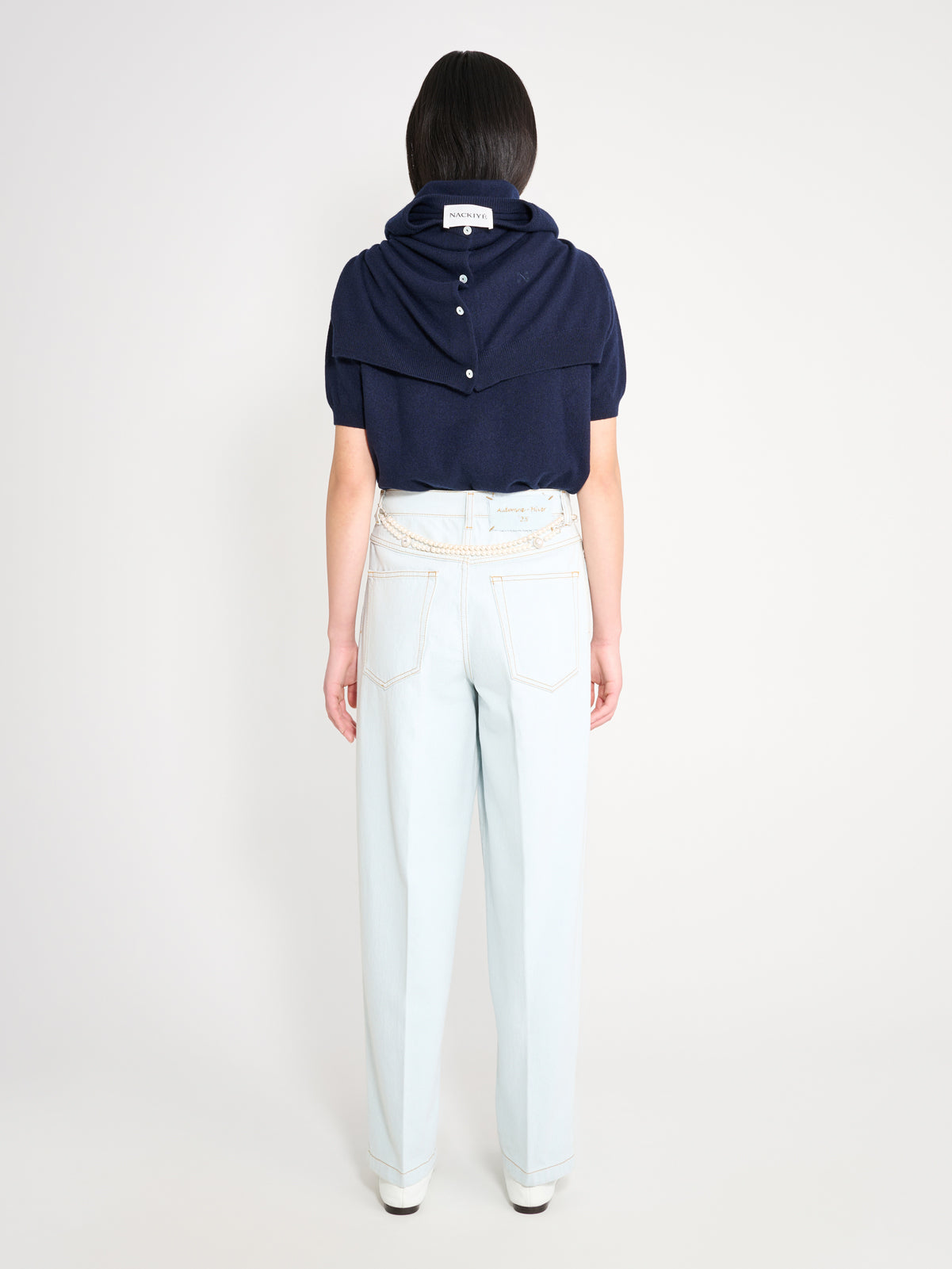 Two back pockets and two front pockets, embroidered Croisière' 25 patch sits in the exterior waist band. Contrast topstitch detail.