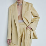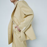 Oversize double-breasted jacket in a yellow buttercream colour.