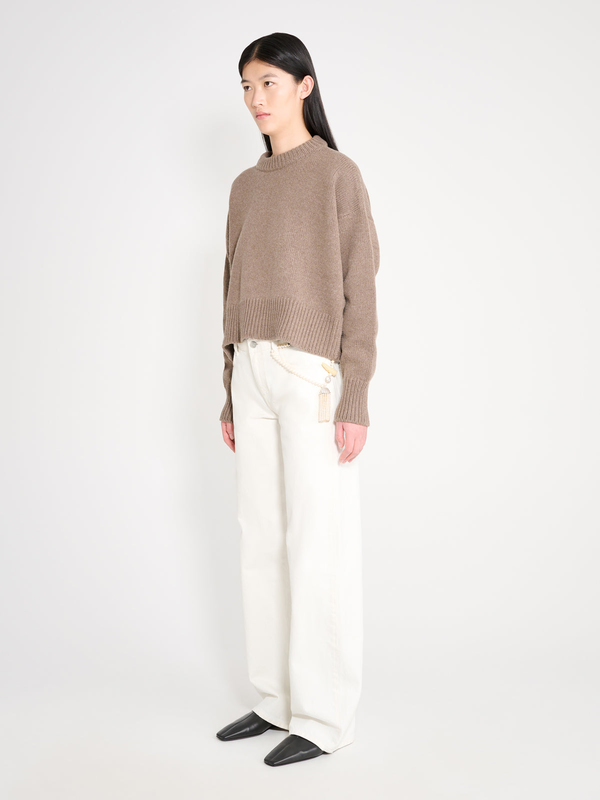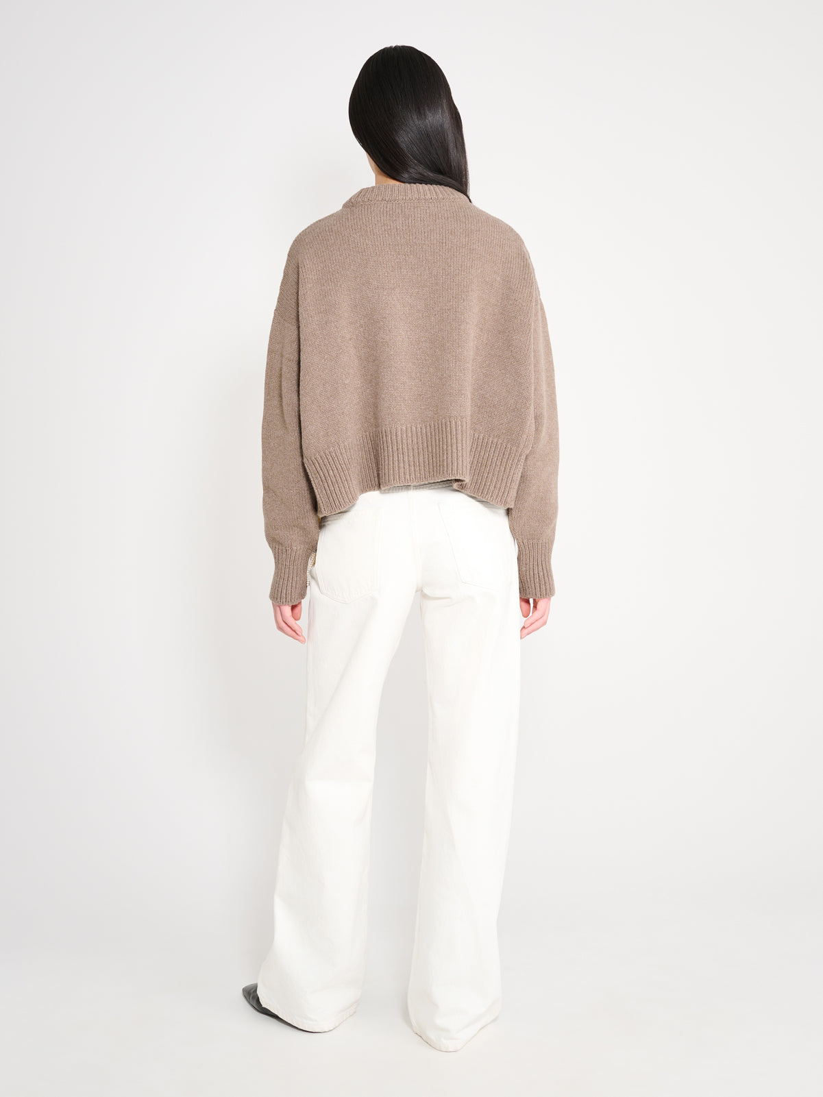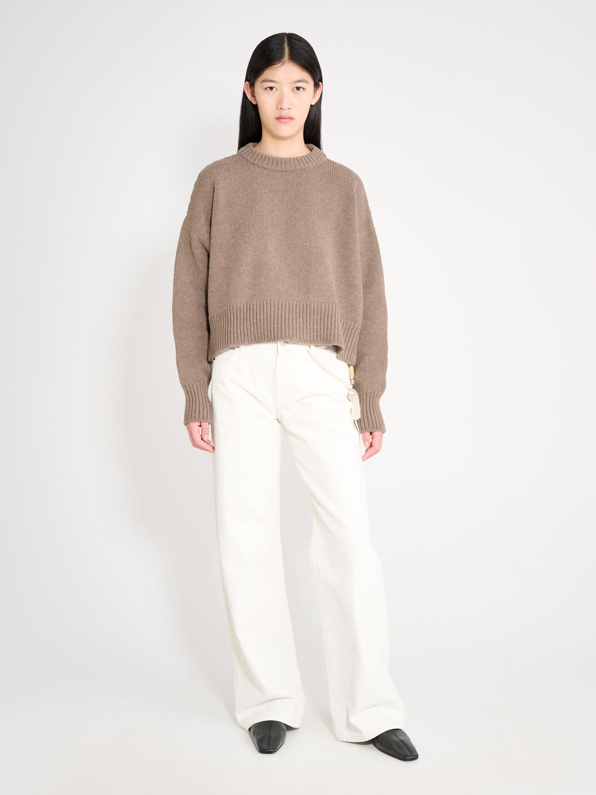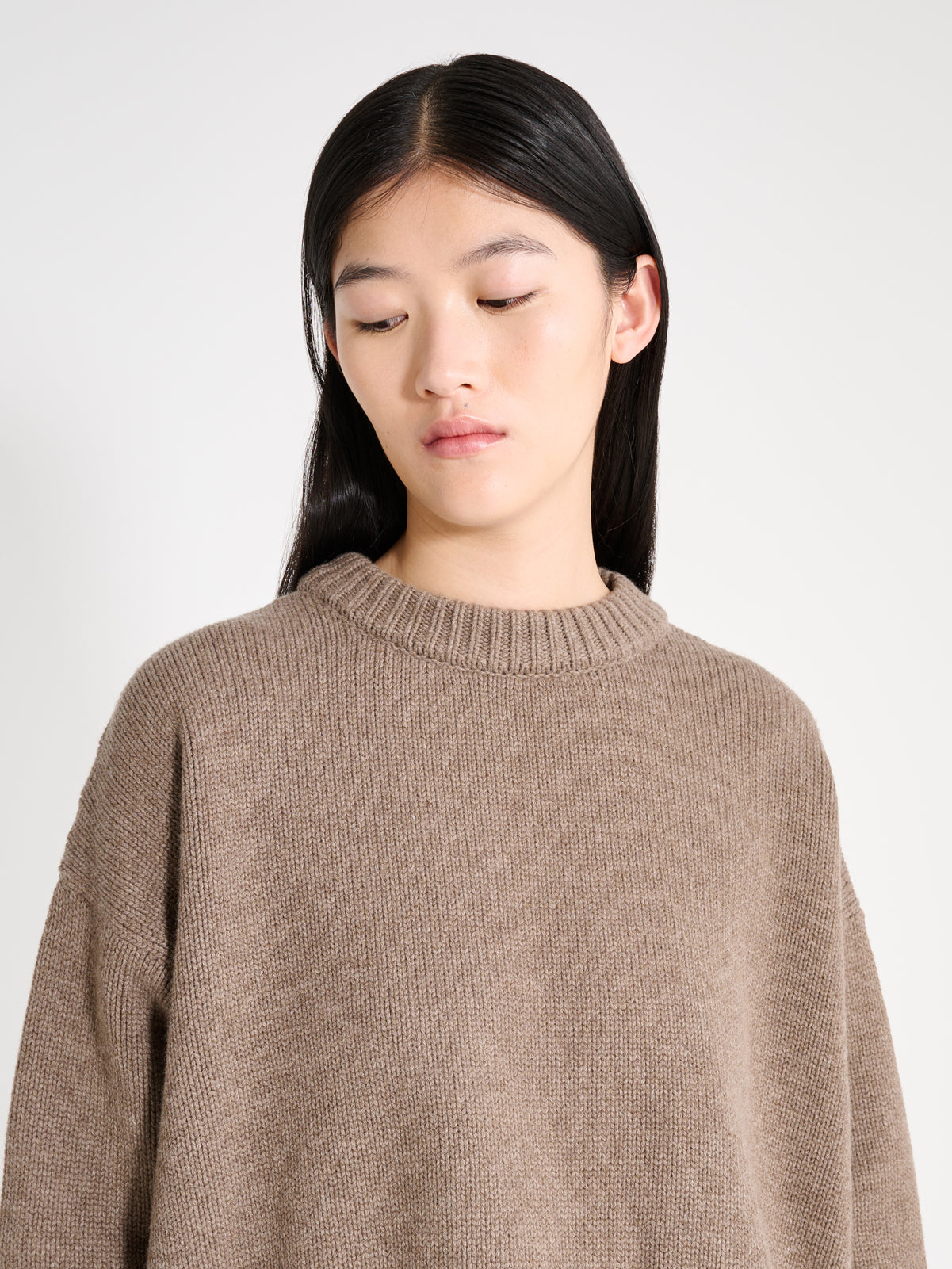 Loose fitting cashmere & wool jumper. In a luxuriously soft, lightweight cashmere, wool blend, this classic jumper has a rounded crew neckline, capped sleeves and a loose fit through the body.