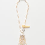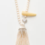 Hand-strung pearls with silver hardware and mini pearl tassels.