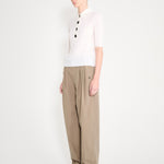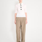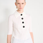 A soft knit polo with button detail. Spun from fine Italian merino wool, this classic knit top has a light, slim fit and a smart polo collar. Finished with lustrous mother-of-pearl buttons, it is ideal for layering all season long. Fine stitching along the hems.