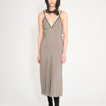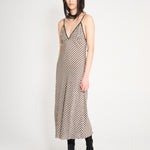 90s inspired strappy A line dress with hidden elastic on the back and a side zip.