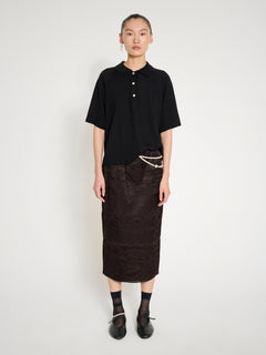 The Draw Short in Thomas Mason poplin borrows the ease of your favourite hidden-away boxers, only dressed for the city. A faux front opening creates a relaxed, tailored feel, while pleats turn it into a city-ready short—perfect with wool tights. Folded hems with soft raw edges keep things casually refined.
