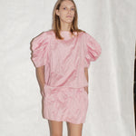 FallIWinter 26-27 for Pre-Order. Expected to ship 25 July 2026 - 15 August 2026. Mini skirt with elasticated waist in crinkled cotton metallic fabric. 91% Cotton 9% Metallic