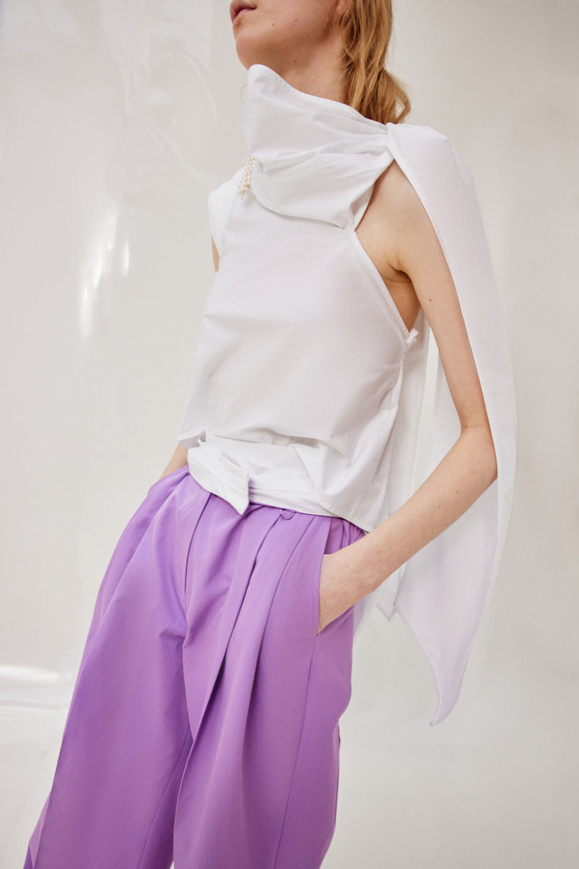 Scarf like top with elastic back.