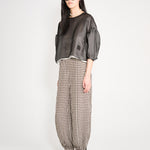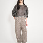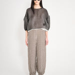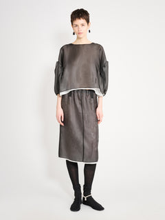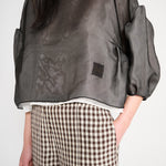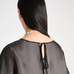 Sheer petticoat blouse. Balloon sleeve top with pin tuck details & same colour ribbon detail at the back of the neck. Small pleats extend from the cuff.