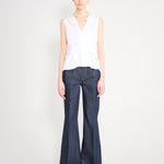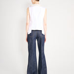 Gilet styled shirt with hand raped ruffle detail.