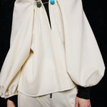Nackiyé invests in exquisite fabrics and artisan handiwork that require delicate care. We typically recommend professional dry cleaning. If you decide to wash your Nackiyé pieces, please refrain from machine washing and harsh chemicals. Gentle hand washing with a mild detergent in cold water is recommended. Do not spin dry or wring your pieces and lay flat to dry slowly.