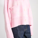 Icebreaker loose fitting cashmere melange cardigan. A pink two tone yarn, our Icebreaker is a soft, lightweight wool. This classic jumper has a rounded crew neckline, capped sleeves and a loose fit through the body.