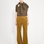 A relaxed low waist straight pant & cropped leg. Inner hemmed piping and belt loops. Two pockets at the rear, including two front pockets. Our hallmark Embroidered 'N' features on the front change pocket.