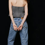 Mini bustier with pin tuck details. Inner bustier lining with small hooks & partly inner ruched back. Fastened with back zip on outside.