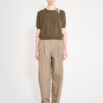 To accompany our Seashell Cardigan, we have our crew neck short sleeved sweater in our lightweight cashmere. Lightly ribbed sleeve hems and bottom hem. Embroidered 'N' hallmark.