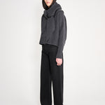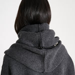 Cashmere Hood Scarf. Model is wearing the Queens Guard Scarf with the Avalanche Sweater (a separate piece).