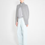 High neck cape with two matching buttons.