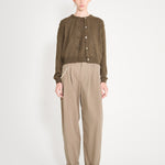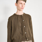 A beautiful lightweight cashmere cardigan with mother of pearl buttons. Lightly ribbed cuffs and hem. Embroidered 'N' hallmark.