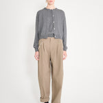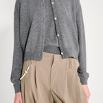 A beautiful lightweight cashmere cardigan with mother of pearl buttons. Lightly ribbed cuffs and hem. Embroidered 'N' hallmark.