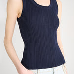 A new addition to our knitwear collection, our Skintight is a tightly ribbed tank top.
