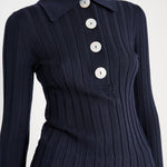 Long sleeved knit polo with button detail. Spun from fine Italian merino wool, this classic knit top has a slim fit and a smart polo collar. Finished with lustrous mother-of-pearl buttons, it is ideal for layering all season long.