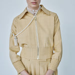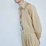 Zip-up, collared, slim fit bomber jacket with embroidery in a honey yellow colour at the bottom of the left-hand jacket side front. Elastic smocked sleeve cuffs and waist hem are a feature of the Taxi Bomber Jacket. The back has armscye details.