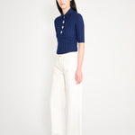 A relaxed low waist straight jean. Two pockets at the rear, including two front pockets and a change pocket. Embroidered Automne-Hiver '25 patch sits in the exterior waist band.