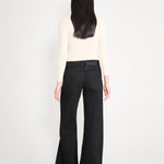 A relaxed low waist straight jean. Two pockets at the rear, including two front pockets and a change pocket. Embroidered Automne-Hiver '25 patch sits in the exterior waist band.